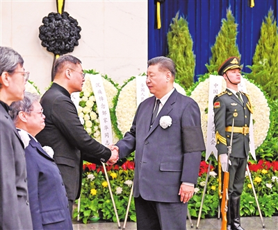 上午9时30分许,习近平、李强、赵乐际、王沪宁、蔡奇、丁薛祥、李希、韩正等,在哀乐声中缓步来到邹家华同志的遗体前肃立默哀,向邹家华同志的遗体三鞠躬,并与邹家华同志亲属一一握手,表示慰问。