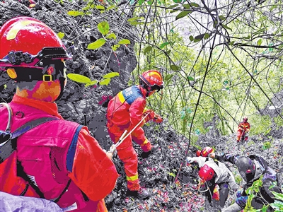 由于连续降雨,原本狭窄的羊肠小道泥泞不堪,光滑的植被和岩石被冲刷得更滑,最陡处坡度接近90度。为此,救援人员携带安全绳、折叠担架等救援装备,在村干部的带领下,在齐膝深的杂草中艰难跋涉近一小时,终于找到了待救援女孩。经医护人员初步检查,女孩左手骨折,其他轻微擦伤,医护人员迅速为其固定骨折部位。现场指挥员发现,山路不但崎岖湿滑,且四周藤蔓交织,杂草丛生,即使用担架,也无法保证能安全把伤者送下山。雨越下越大,为尽快把伤者送下山,考虑到伤者能正常行走,现场指挥员决定采用高空救援技术,用全身式安全吊带固定伤者,采取“上方牵引+下方托举”双保险模式牵引转移。因雨大路滑,消防员好几次差点摔倒,女孩稍有异况就大叫害怕。救援人员一边安慰女孩,一边小心翼翼地往山下转移。经过近1.5小时的艰难转移,救援队伍终于抵达山脚,随即把女孩送上救护车送往医院救治。