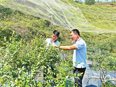 据蓝莓基地负责人介绍,目前种植面积约40亩,主要种植蓝莓1号。在种植过程中,采用绿色生态的种植方式,确保了蓝莓果实的天然、健康和高品质,因此深受群众的喜爱。“我们依托广东农科院专家团队的技术指导,采用有机种植模式,不使用化学农药,通过滴灌系统精准施肥,今年的蓝莓不仅产量高,糖度更是达到15度以上,年产量约2万公斤。”该负责人说。