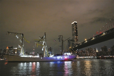 美国纽约市长埃里克·亚当斯18日凌晨在社交媒体上说,17日晚发生的墨西哥海军帆船在纽约撞桥事故已造成两人死亡,另有17人受伤。墨西哥海军“库奥特莫克”号三桅帆船17日晚在纽约市东河航行时,其桅杆撞上布鲁克林大桥,当时船上载有277人。 (新华社发 章正浩 摄)