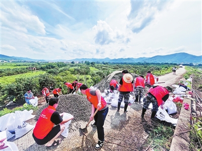 发挥“三项机制”作用厚植生态底色。落实“四下基层”制度,充分运用“领导包抓”“激励奖补”等工作机制,凝聚多方力量共同推进乡村绿化工作。坚持种管并重,落实“网格化管护”“绿美积分制”“一树一码”“村民认养”等管护方式,有效破解苗木日常管护责任缺失难题。今年上半年累计开展1132次乡村绿化主题党日活动,7244名农村党员参与“五带头”,引导和发动群众参与乡村绿化8.63万人次,累计栽植乔木43.1万株,提前完成年度种植目标。提升打造宋桂镇茆岭村、桂圩镇新塘村、建城镇地心村等一批绿美乡村,让绿色生态的发展底色更深厚。
