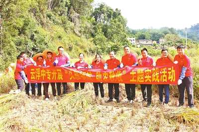 近年来,云浮中专深耕“百千万工程”,职教力量助推乡村振兴。学校有关负责人到郁南县开展“百千万工程”专项调研;师生连续4年深度参与前锋番薯节,提供策划设计、志愿服务、直播推广等服务;学校开展“学思践悟新思想,金秋助农办实事”主题党日活动,帮助果农拓宽销路;党员教师团队以“传、帮、带”方式开展粤菜烹饪职业技能培训,为市总工会、定点帮扶村培养烹饪技能人才……学校典型案例《学好百年党史 赋能乡村振兴》获得省教育工委2021年党史进校园系列活动典型案例一等奖。