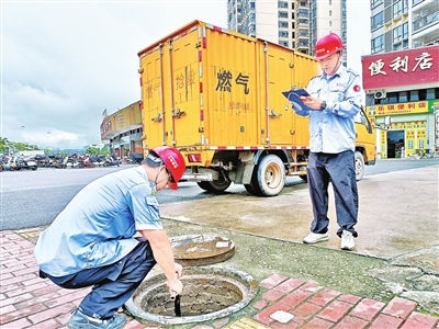 本报讯 (云浮融媒记者 林峰 邓渭滨 通讯员 练志林) 为保障十五运会期间赛场及周边地区天然气使用安全稳定,7月1日,云浮中燃城市燃气发展有限公司(以下简称云浮中燃)派出巡检小组,对云浮市体育公园周边开展燃气安全专项巡检,助力全运会期间安全供气、安全用气(如图)。