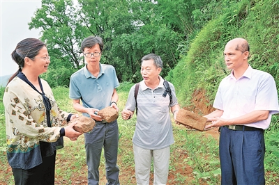 清道光九年(1829年),通门人陆星达在黄五岭(又称灯心岭)创办甘泉书院。1941年秋,书院迁至通门街坊办学,更名为通门乡中心小学校,1945年成为郁南县民众武力指挥部驻地。调研组在原村老支书指引下,在距甘泉井百米处的平地上发现重要遗迹:特色“五眼青砖”、古石磨及百年树龄的木樨(丹桂)。据专家介绍,“五眼砖”中央凹槽用于填浆砌筑,四角小槽可接榫;丹桂树形如五指,寓意“蟾宫折桂”,是古代书院常见树种。这些遗存勾勒出当年书院“书声琅琅”的景象。调研组已对采集样本进行专业处理,并叮嘱当地做好现场保护。