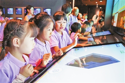 7月8日,参加夏令营的“小候鸟”在深圳中国钢结构博物馆参观。