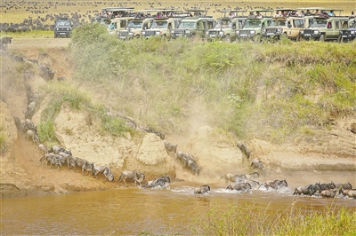 每年7月起,数以百万计的角马、斑马等野生动物为追逐水源和青草,从坦桑尼亚塞伦盖蒂国家公园向北迁徙至肯尼亚马赛马拉国家保护区,途中跨越国境与河流,形成了一条震撼人心的“生命之河”,是东非大草原上的一大自然奇观。