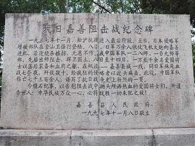 嘉善处于沪杭咽喉,地理和战略位置十分重要。1937年11月8日,当日军的飞机、大炮袭来,中国军人筑起血肉长城阻击敌人。