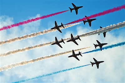 这是9月28日在马耳他圣保罗湾城拍摄的飞行表演。