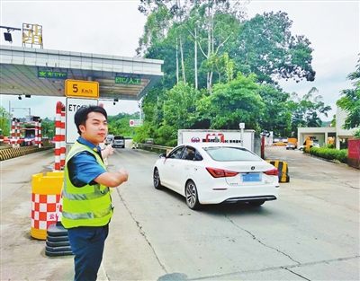 作为副班长,陈银章值守在郁南站广场,有序开展指挥交通、查验绿通车辆、处理特情、维护交安设施等工作。入职12年来,他默默坚守在保畅一线,总把回家过节的机会让给身边离家远的同事,“我们家离得近,平时回家比其他同事更方便。”陈银章说,只要夫妻俩心在一起,在哪儿过节都一样开心。