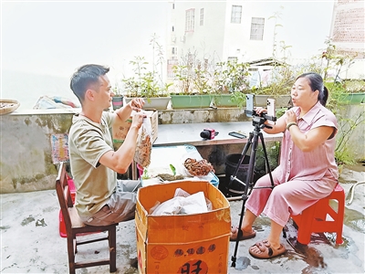 秋日晨光洒满云安区六都镇富强村,一间农家院落里,80后夫妻黄华扬、胡小燕正对着手机镜头热情推介。镜头扫过,笋干、香菇、土茯苓、五指毛桃等土特产琳琅满目,短短半小时,直播间订单提示音接连不断。