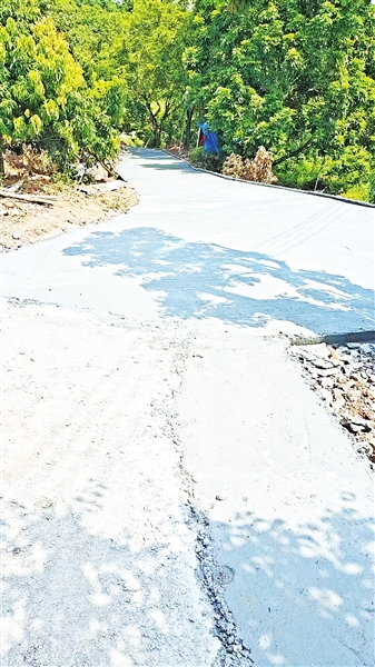 该村道宽2.5米,一端连接村内5户人家,另一端直通蔬果种植区。由于村内地势低洼,每逢雨季,路面便积水成溪,不仅造成出行困难,老人、小孩易滑倒,连运输肥料的三轮车也常陷入泥中;更关键的是,荔枝、龙眼等农产品因运输不畅,直接影响村民经济收入。尽管村里多次计划整修,但因村级集体经济薄弱,资金缺口长期无法填补,修路成为村民多年来萦绕心头的期盼。