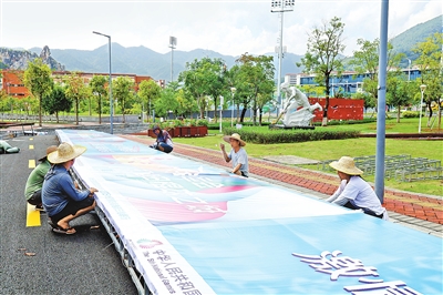 连日来,我市有关部门在市区世纪大道沿线、公交站候车亭、体育公园周边、东西街、菜丁中心市场、吾悦广场、环市路等点位,密锣紧鼓布置十五运会宣传海报、曲棍球雕像等,营造迎接十五运会的浓厚氛围。