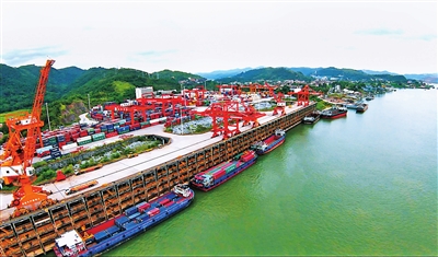 再看西江“黄金水道”,它从云浮北部穿城而过。云浮紧紧抓住这一天然优势,先后引进珠海港、广州港等大型港航龙头企业参与港口码头建设。如今,云浮港已投产云浮新港、广州云浮国际物流港等大型集装箱港口码头,具备最大年货物服务能力1.5亿吨、年转运56万集装标箱的能力。2024年,全市港口货物吞吐量完成6211万吨,同比增长14.9%,其中集装箱完成23万标箱,同比增长16.2%。西江,这条曾经的普通河流,如今正以“黄金水道”的身份,为云浮的经济发展源源不断地输送活力。