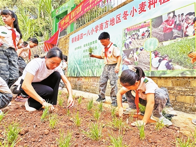实践活动在专门开辟的“小麦基地”里进行,同学们化身“小农人”,撸起袖子,拿起工具,翻土松地、小心翼翼栽种麦苗、提水浇灌……每一个环节都一丝不苟。在学校特色劳动实践基地“五谷园”,专家们为大家详细讲解水稻选种、育苗、插秧、管理到收获的全过程,生动揭示“一粒米”的漫长旅程,同学们亲身体验了为水稻、玉米除草除虫的劳作。
