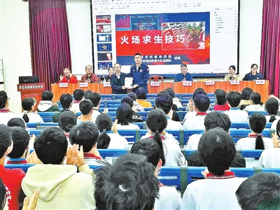 本报讯 (云浮融媒记者 周洲 通讯员 胡梅) 近日,罗定市消防救援大队联合应急、教育、科协、团委等部门,为罗定市廷锴纪念中学送上了一份丰富的消防安全“礼包”。“礼包”包含一套实用读本、一场荣誉表彰和一堂生动课程,以可感、可触、可记忆的方式,将消防安全知识深深植入师生心中。