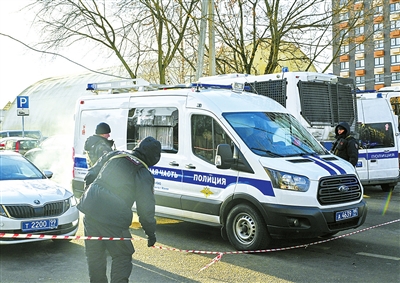 据俄新社报道,俄首都莫斯科南部24日凌晨发生爆炸事件,导致两名警察身亡,另有一名男子死亡。这起爆炸距俄联邦武装力量总参谋部作战训练局局长萨尔瓦罗夫中将22日遇袭身亡的地点不远。(新华社记者 郝建伟 摄)