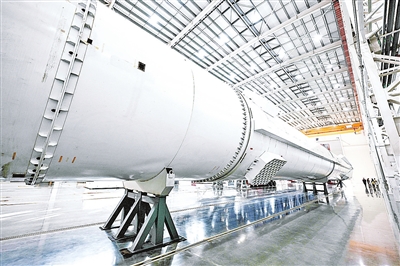 在位于海南文昌的星际荣耀运载火箭总装总测复用工厂拍摄的双曲线三号运载火箭模拟箭(2025年12月30日摄)。