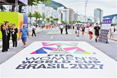 当日,国际足联在巴西里约热内卢举办活动,发布了2027年女足世界杯的会徽、口号和专属音效。 (新华社记者 周永穗 摄)